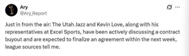 美记Ary报道:乐福与爵士正在积极协商买断事宜,预计下周达成最终协议。